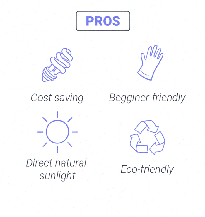 Bij deze eenvoudige methode heb je niet de uitrusting en omgevingsfactoren tot je beschikking voor een optimale oogst. Het is echter een geweldige optie voor mensen die thuis willen kweken voor een eigen voorraadje. Bovendien heb je weinig extra kosten en is het aantrekkelijk voor beginners, omdat het zo simpel is.