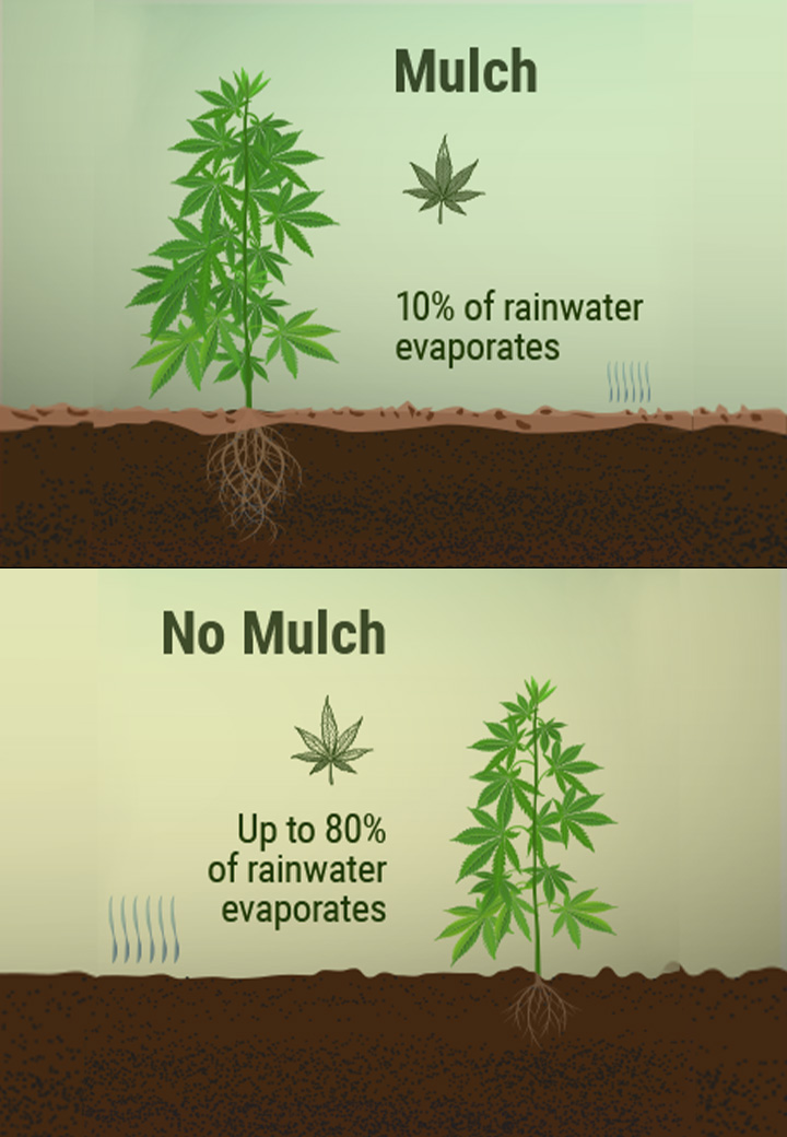Mulch zorgt ervoor dat onkruid niet de kans krijgt om te groeien in je tuin. En mocht er wel onkruid ontspruiten, dan is het veel gemakkelijker om het te verwijderen. Dit maakt mulchen ideaal voor buitenkwekers, omdat hun wietplanten sneller te maken krijgen met onkruid.