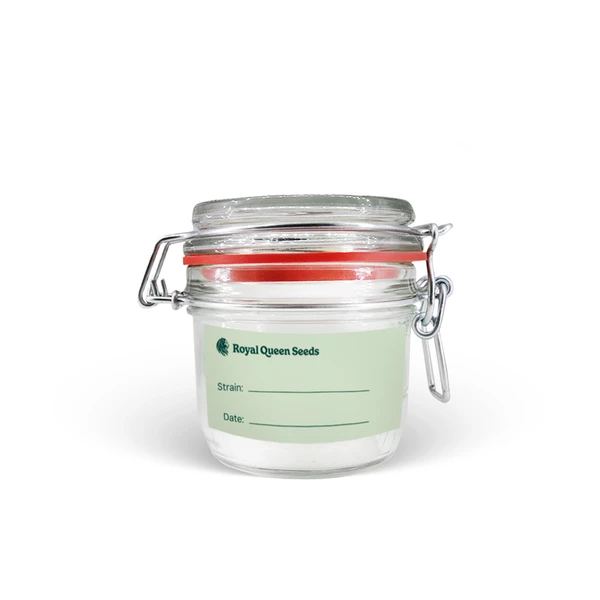 Deze glazen curing potten voor wiet worden geleverd met twee decoratieve ECO Royal Queen Seeds stickers. Dit geeft je de optie om ze te personaliseren. Plaats de ronde sticker op het deksel voor een strakke 'dispensarium' uitstraling. Plak de rechthoekige op de zijkant om de soort te vermelden en de datum waarop het curen start.