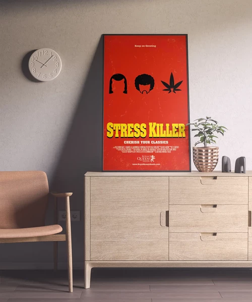 De Stress Killer-poster heeft die geweldige retro-uitstraling die je meteen herkent. Afgedrukt in 60×95 cm, groot genoeg voor impact maar makkelijk een plekje te geven. Het glanzende papier maakt de kleuren een beetje helderder zonder het ruwe, doorleefde ontwerp te verliezen.
